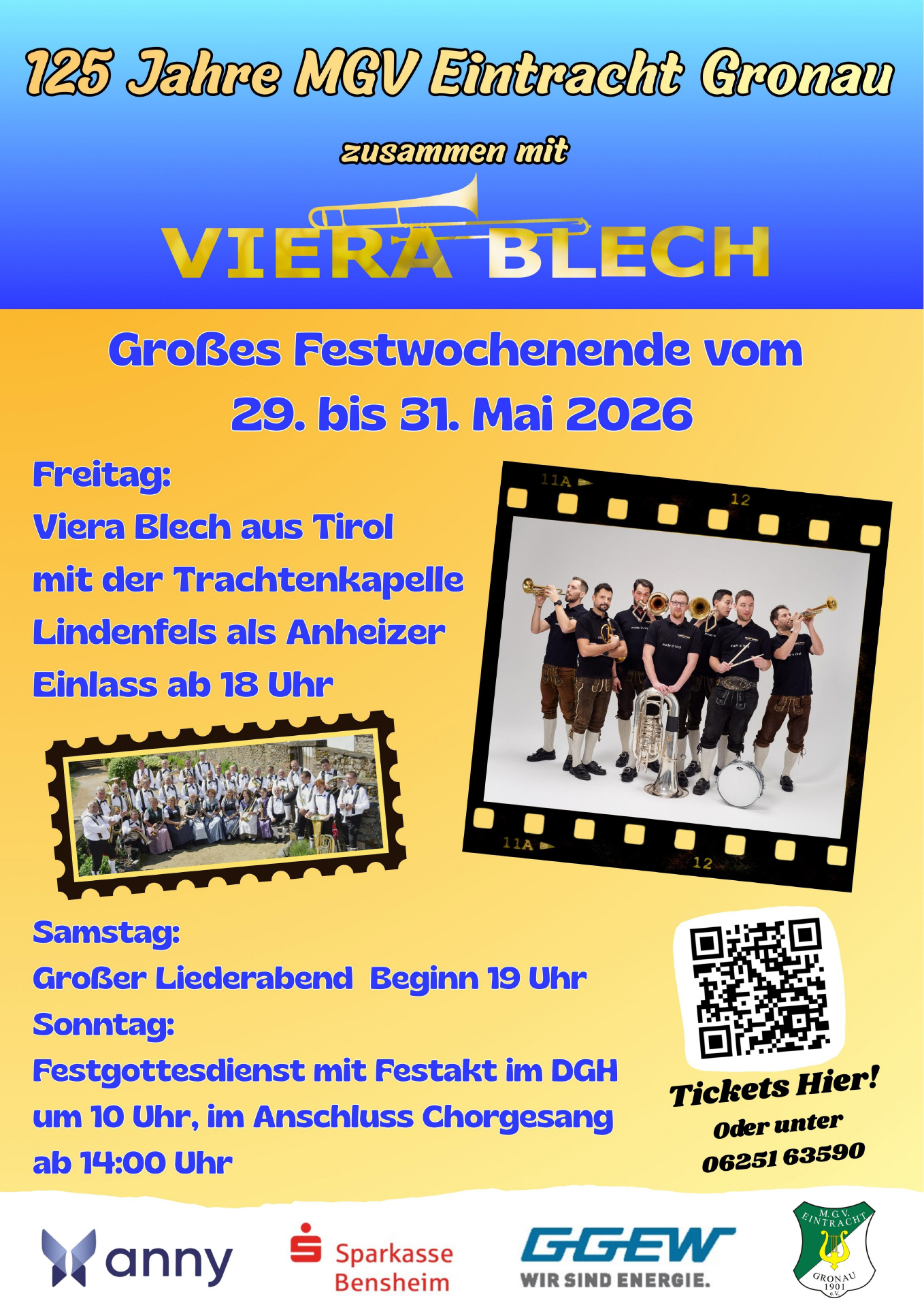 Dem gerecht wird das Programm der Festtage vom 29. bis 31. Mai 2026 in Gronau alle Veranstaltungen finden im Dorfgemeinschaftshaus Gronau Märkerwaldstraße 81a 64625 Bensheim DE statt: