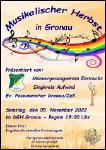 Musikalischer Herbst Präsentiert vom: Männergesangverein Eintracht Gronau Ev. Posaunenchor Gronau/Zell Singkreis Aufwind Samstag, den 05. November im DGH Gronau - Beginn 19:00 Uhr Eintritt Frei