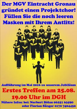 Der MGV Eintracht Gronau gründet eine Projektchor! Aufführung im Mai 2026 zu unserem 125 Jährigen Jubiläum.