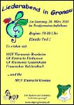 Eine herzliche Einladung an alle Chorfreunde und Liebhaber des Chorgesangs. Der Männergesangverein Eintracht Gronau veranstaltet am Samstag, 28. März 2020 um 19. 30 Uhr seinen Liederabend im Dorfgemeinschaftshaus Gronau. Der Eintritt zu der Veranstaltung ist frei, für Speisen und Getränke ist bestens gesorgt.