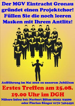 Der MGV Eintracht Gronau gründet eine Projektchor! Aufführung im Mai 2026 zu unserem 125 Jährigen Jubiläum.